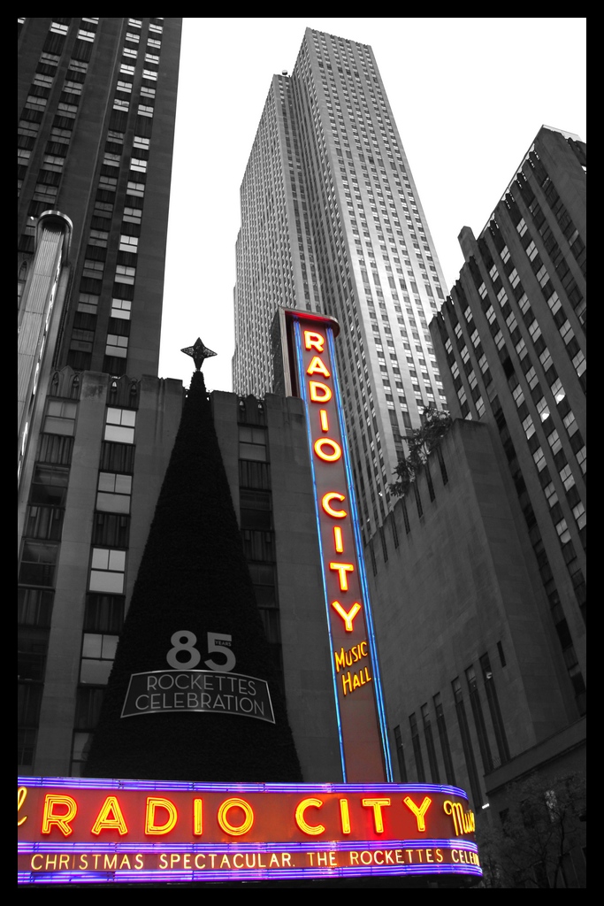 le scritte richiamerebbero l'interesse sia in pieno colore che in conversione B/N soprattutto per questa spinta verso l'alto dell'insegna luminosa he sembra rincorrere i grattacieli