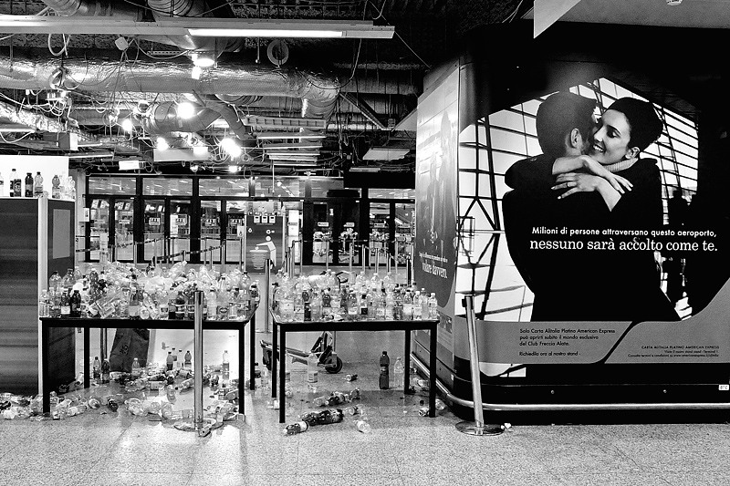 C'è di partenza un buon dato insolito della realtà, sul quale muovere le nostre interpretazioni. Personalmente provo più interesse - nonché compassione- verso il piccolo omino sullo sfondo messo a ripulire tutto da solo il posto.