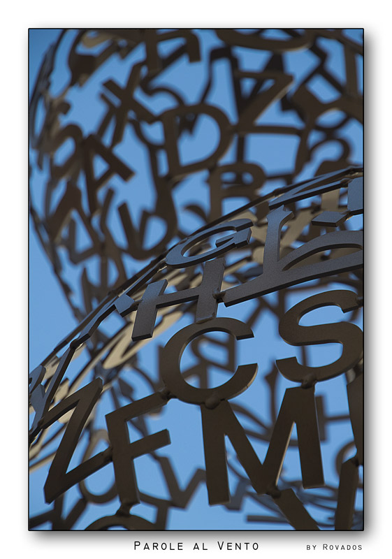 piacevole lo sfocato che le accompagna dove si intuisce il gioco ed intreccio grafico delle lettere immaginando chissà quale opera possa tenerle così..."sospese"