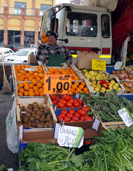 Molto piacevole la complicità del venditore, meno la distanza che si frappone tra te e lui, rendendo poco visibile, e quindi incisiva la sua espressione. Bellissimo lo zero corretto sul cartello a sinistra.