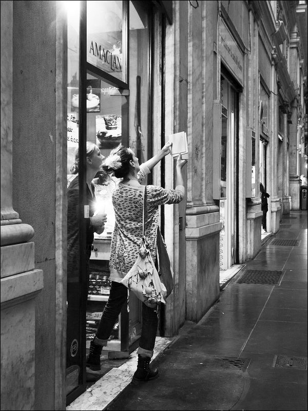 La cosa che più apprezzo di questo scatto è il bianco e nero a mio parere veramente bello, la scenetta non è strepitosa ma comunque particolare nell'istante colto.