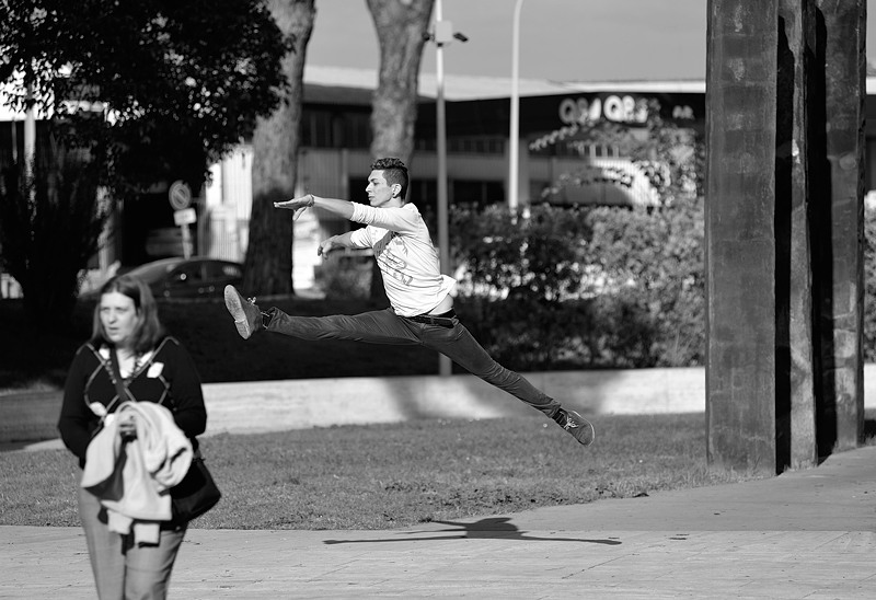 Con tutto a fuoco la scena avrebbe assunto una connotazione più spinta, più vivace: la passante sarebbe diventata parte integrante del racconto, una vittima inconsapevole sulla quale si stava scagliando il ragazzo.