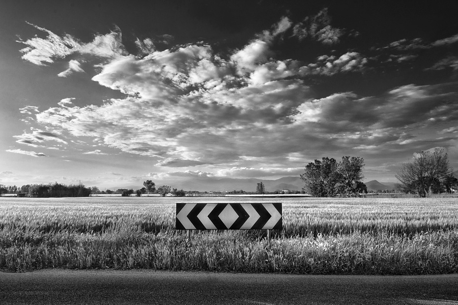 semplice ma azzeccata, le direzioni date dal cartello seguite anche dalle nuvole completano lo scatto,bel b/n