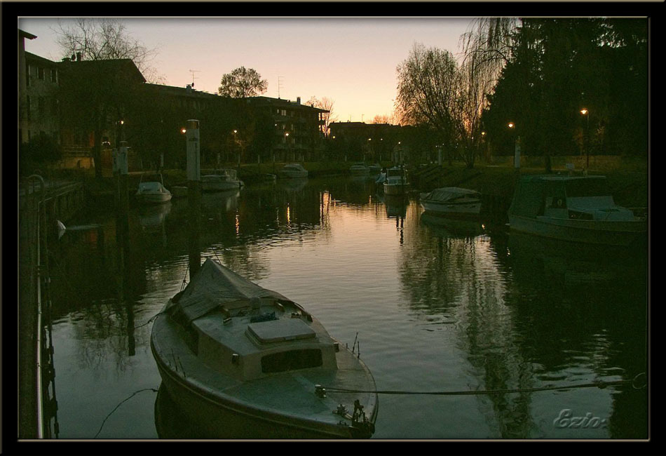 | Il canale al calar della sera di una bella e fredda giornata invernale. |