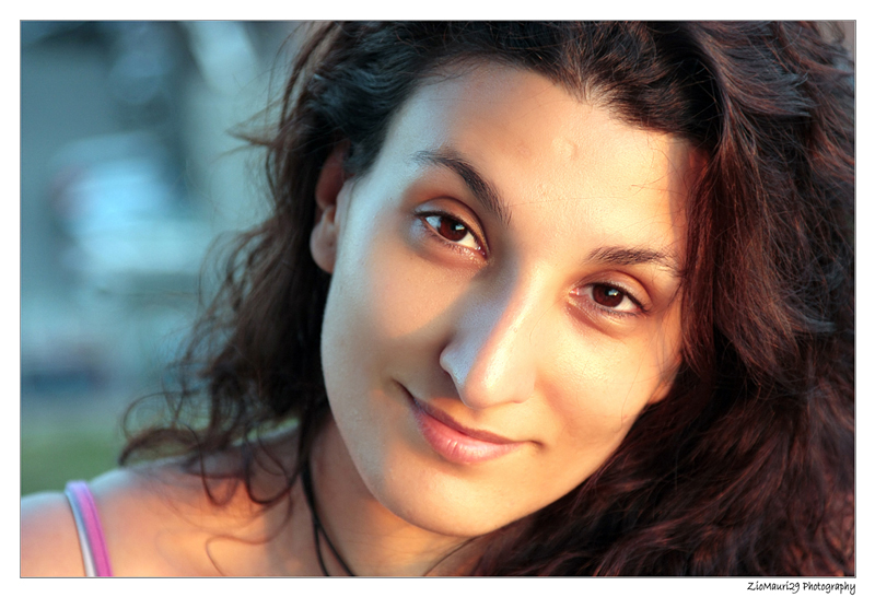 Ciao Clara, vedo solo ora il tuo commento, ma per correttezza rispondo alle tue osservazioni.. i colori e la resa dell'incarnato viene direttamente dalla luce del sole al tramonto, che era alle mie spalle, quando scattavo la foto.. in pochissimi minuti ha assunto delle tonalità molto calde, e quelle ho voluto lasciare sulla pelle.. Per quanto riguarda la levigatezza della pelle, beh.. un leggerissimo lavoro per cancellare alcuni puntini sulla pelle c'è, ma non ho levigato nessuna zona.. è forse una gestione non perfetta delle tonalità più chiare che tradisce qualche problemino.. ma per correttezza farò di più: appena posso controllerò la versione uscita dalla reflex, e farò mente locale!