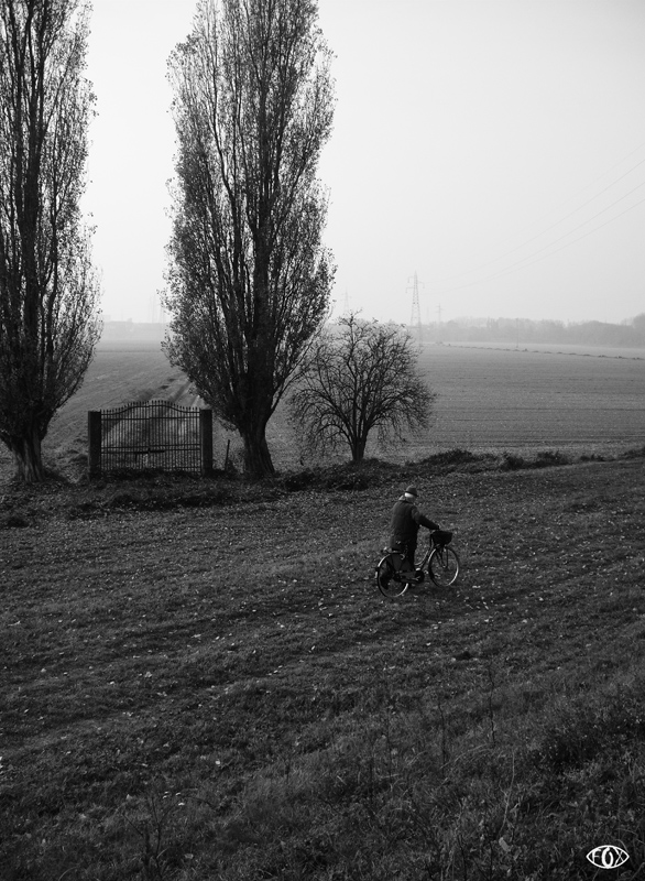 Il cancello tra i due alberi, l'uomo con la bicicletta... elementi per uno scatto davvero notevole, peccato.. La versione di Mauroq non è niente male. Un saluto Luigi e tanti cari Auguri di Buone Feste.