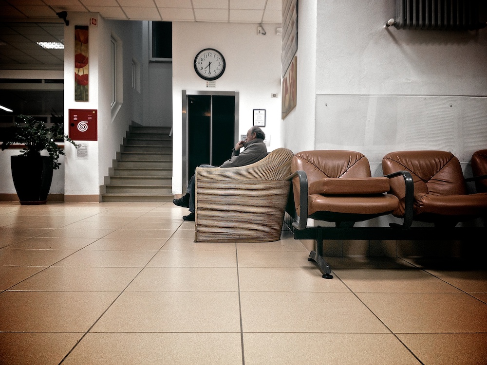 Riguardo alla scena: volevo che sembrasse piuttosto irriconoscibile in quanto non volevo che ci fosse un chiaro e deciso riferimento alla vera situazione: la sala d'aspetto di una casa di riposo, piuttosto particolare. Non volevo strumentalizzare l'aspetto emotivo del luogo, che ti assicuro li è inevitabilmente forte.