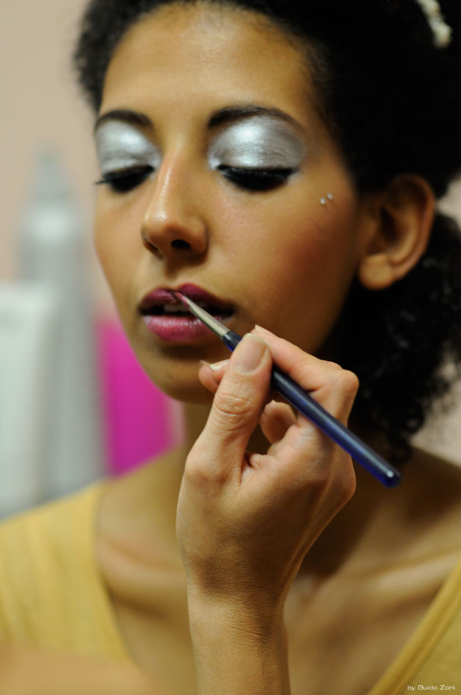 hai infatti sentito la necessità di proporre 4 scatti per raccontare un fatto: una truccatrice prepara una ragazza (o se vuoi la ragazza si sta facendo truccare).