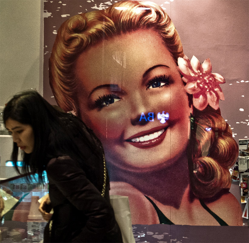 Un classico della street In questo caso lo scatto è piacevole all'occhio ma probabilmente manca un pò di contenuto in quanto le due figure (cartellone e ragazza) le vedo abbastanza slegate l'una dall'altra