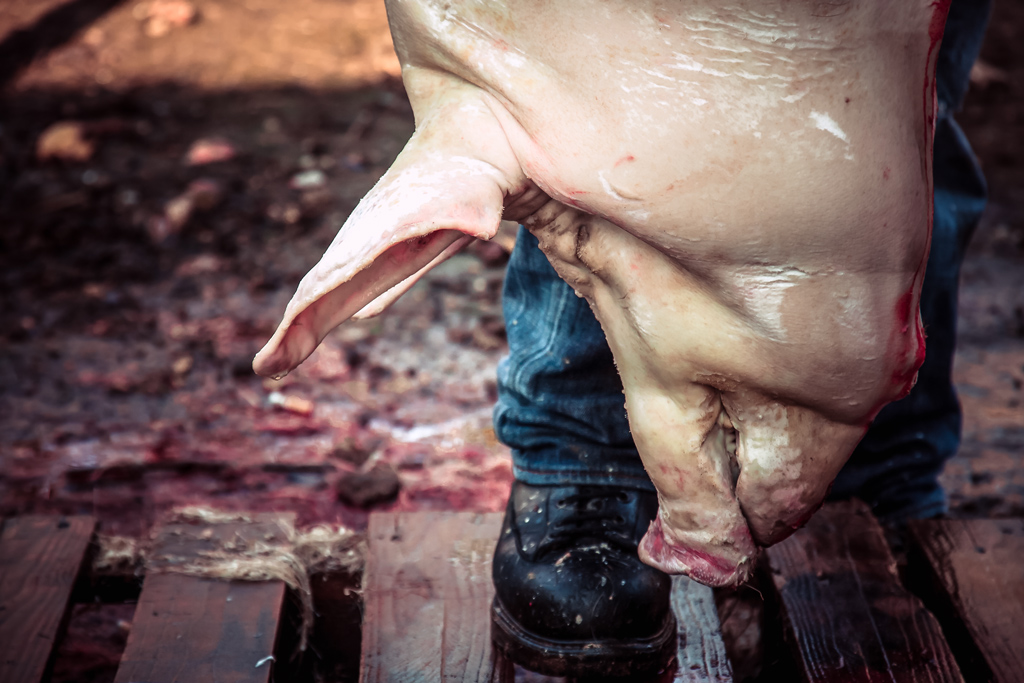 | La foto c'è con tutta la sua crudezza, ma sono davvero l'ultimo che potrebbe contestare questo aspetto, non mi piace molto lo svluppo della foto, vedo troppo lucido il muso del maiale con la zona della bocca che sembra artefatta; correggerei quei riflessi sempre sul muso che, oltre a dare la sensazione di bruciato, distraggono troppo dalla scena |
