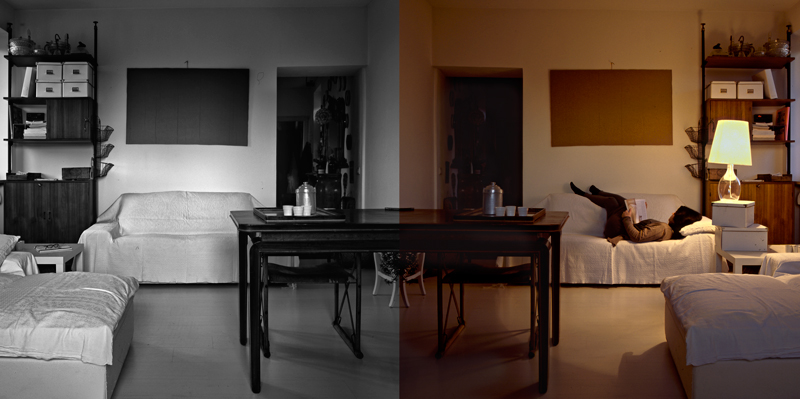 Mi è stato chiesto dalla persona ritratta di fotografare il proprio soggiorno, al fine di farne una stampa molto grossa da inserire in una determinata montatura e quindi appendere il tutto nella stessa stanza ripresa in fotografia.