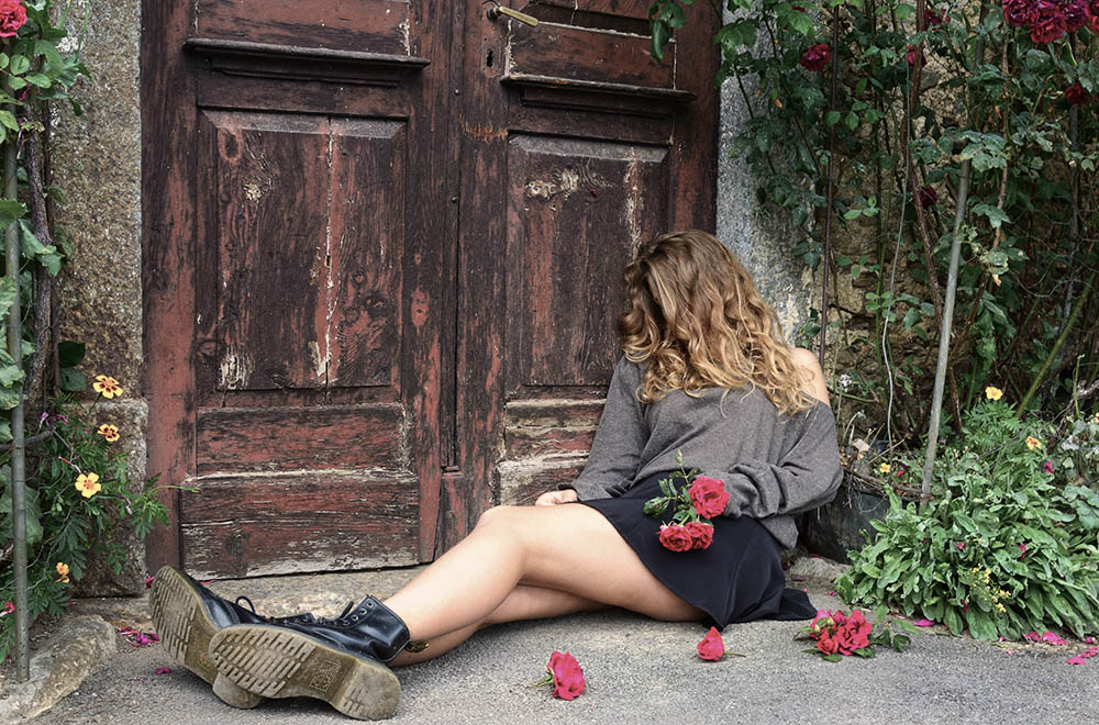 In questo caso la coerenza manche in ambedue i casi, la posizione non dà assolutamente l'idea dell'abbandono del sé conseguente allo sfinimento ed alla spossatezza ma lascia trasparire una tensione muscolare notevole per mantenere la posizione, la posizione del braccio che regge le rose è una posizione che richiede tensione muscolare così come la torsione del busto. In altre parole questo scatto non trasmette il senso di sfinimento che vorresti, la posizione è completamente controllata muscolarmente, cosa che non consona all'abbandono.
