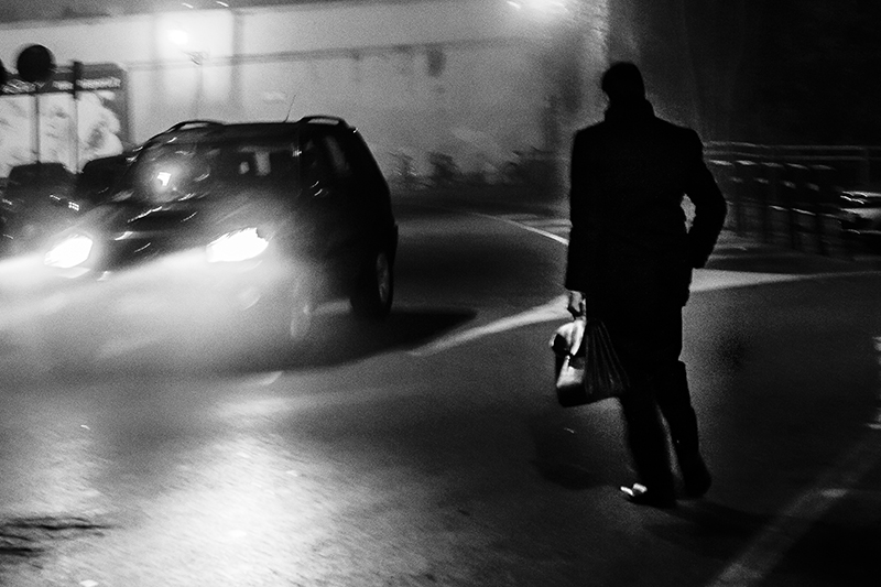 | leggermente un po troppo rumorosa, pero' mi piace come dialogano i la luce dei fari della macchina, e la pendenza plastica della figura umana. |