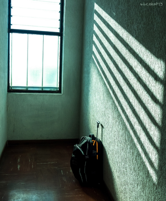 Per quanto riguarda l'dea(che penso sia la cosa più importante per i principianti) mi piace:lo zaino pronto per partire,così in piedi, secondo me ha un gran significato;inoltre originale l'ombra della finestra che si spalma sul muro in maniera interessante.