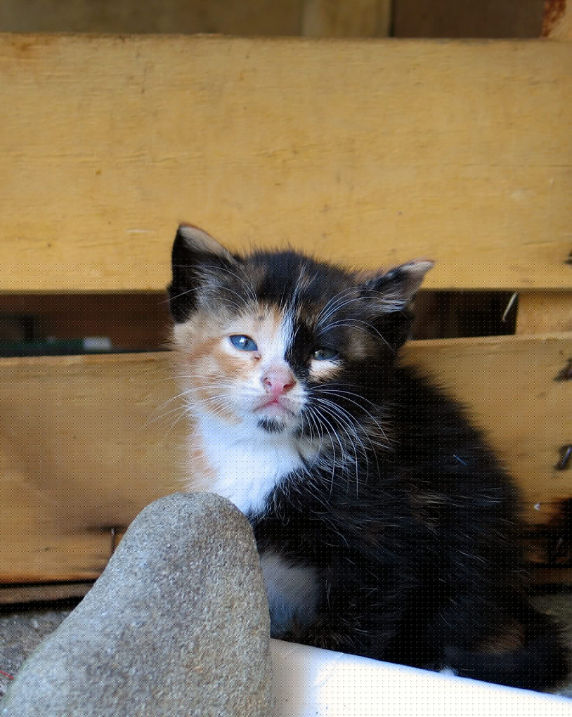 Magnifico il gattino, ma ci voleva un taglio più stretto, troppa aria sopra ed elementi di disturbo davanti. Gli occhietti blu sono impagabili...
