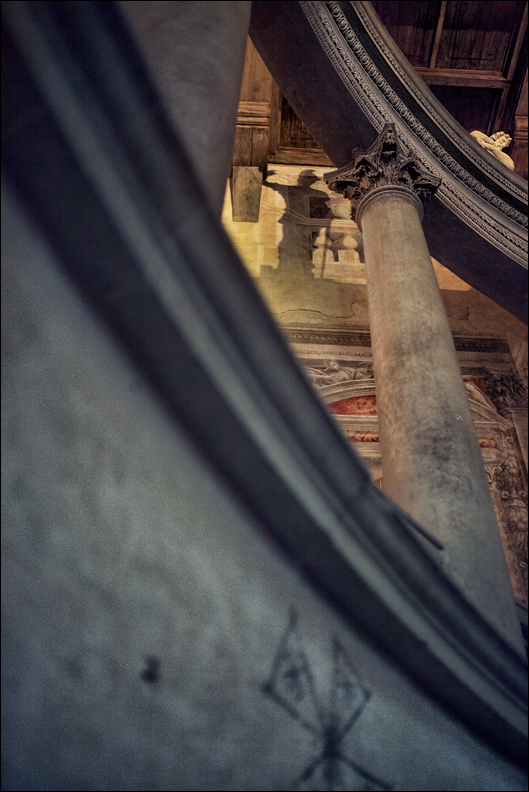 Guardando da sotto..ci costringe ad alzare lo sguardo verso il capitello e la balaustra..