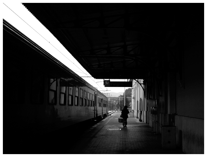 In più diciamo che il soggetto non mi entusiasma. Una silouhette distante che cammina sulla banchina. E' una scena, d'accordo ma troppo comune, troppo normale, e troppo distante quella persona per interessarmi.