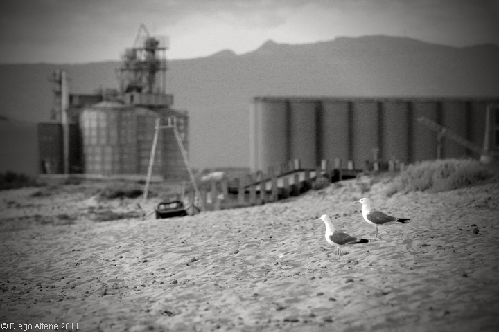 e si presta, proprio per la sua particolare composizione a diverse interpretazioni..quoto in toto la lettura di Webmin, aggiungerei però che il forte effetto tilt-shift fa sentire la mancanza del colore come colonna sonora per questo quadro o perlomeno un'intonazione che sottolinei la già presente atmosfera post-industriale, due mondi che convivono, a fatica..e qualcuno, a fatica, sopravvive.