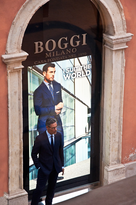 Sì, non potevo fare di meglio, l'ho scattata dalla finestra di un negozio al secondo piano (a Verona come l'altra); mi sono anche precipitato giù al pian terreno per fotografare da vicino, ma il tizio era sparito....