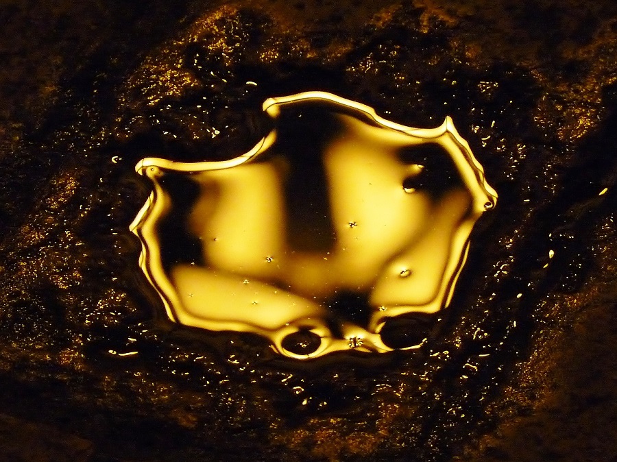 In effetti suggerisce più l'impressione dell'oro fuso che la banale chiazza d'acqua che probabilmente è .