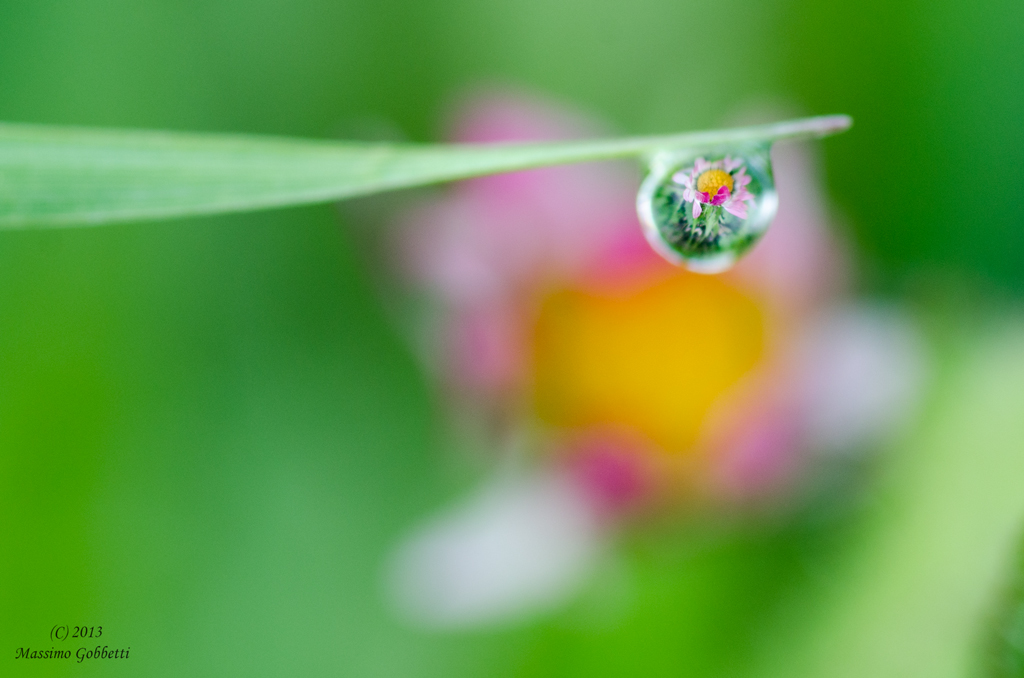 La buona volontà c'è stata, purtroppo il risultato è insufficiente. Dentro la goccia, non basta vedere il fiore, questo deve risultare nitido. Parallelismo e messa a fuoco a bucare la goccia. Naturalmente sempre l'uso del cavalletto.