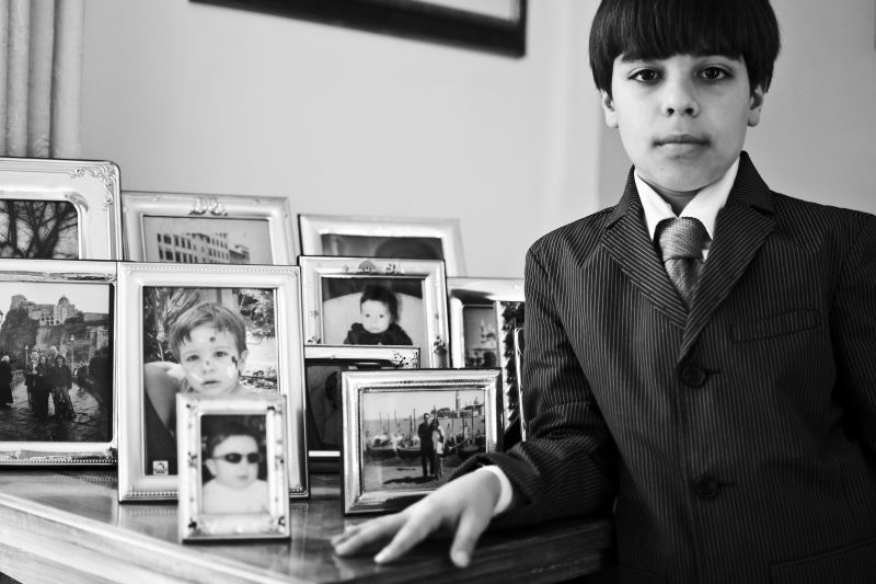 Bello come è stato vestito il ragazzo, l'abito classico rende la foto abbastanza vaga nella collocazione temporale anche se alcuni ritratti incorniciati ne indicano comunque la modernità.