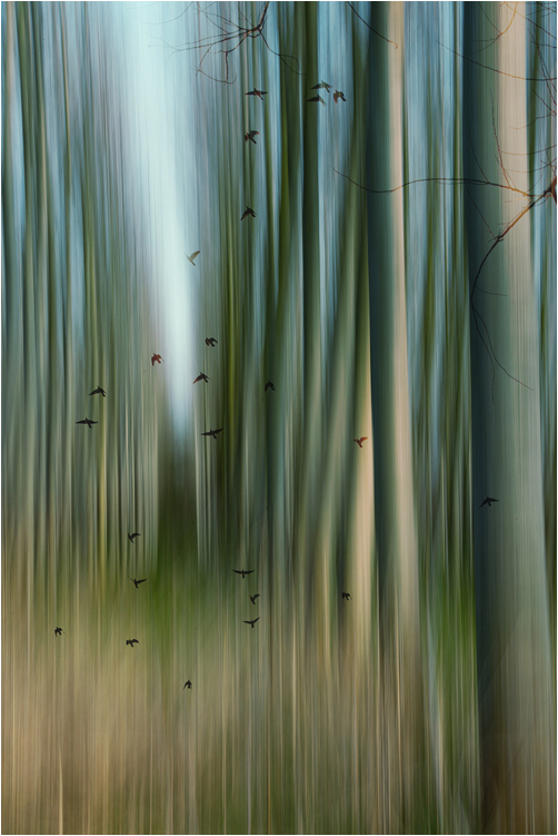 Mi piace molto. Si crea come un varco verso un mondo magico, rigoglioso dove cade proprio lo sguardo accompagnato dal volo degli uccelli che si dirigono verso questa luce, questa fessura. Sembra un bosco incantato e fiabesco. Bella