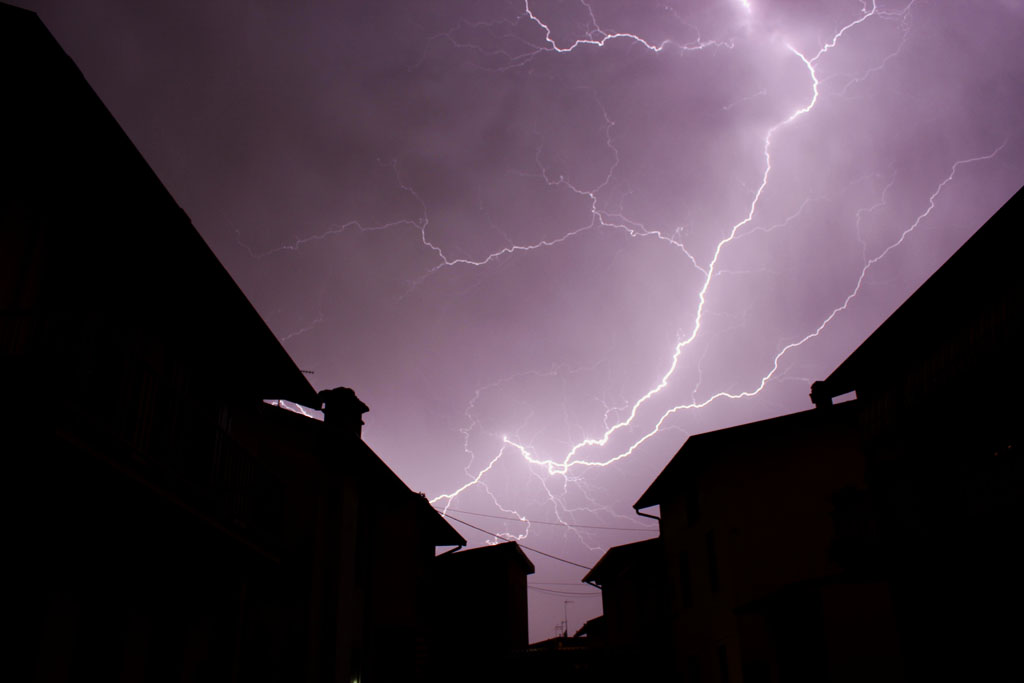 In effetti nello scatto originale i palazzi erano esposti, li ho scuriti un po' in PP per dare risalto al fulmine Smile
