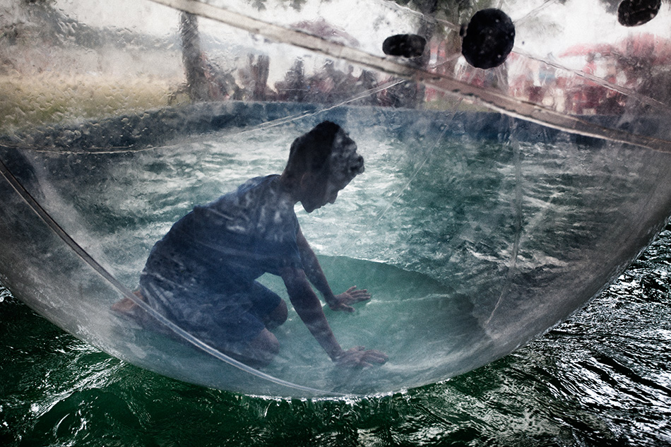 Sono riuscita a mantenere l'aria di mistero in quanto non si tratta di una installazione per osservare il fondale ma di una palla che permette di camminare sull'acqua come questa Ciao