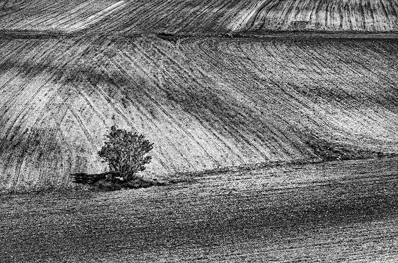 Il paesaggio e la terra si fanno quasi essenziale traccia grafica, si polverizzano in una microscomposizione di materia, che pur mantiene la sembianza paesaggistica.