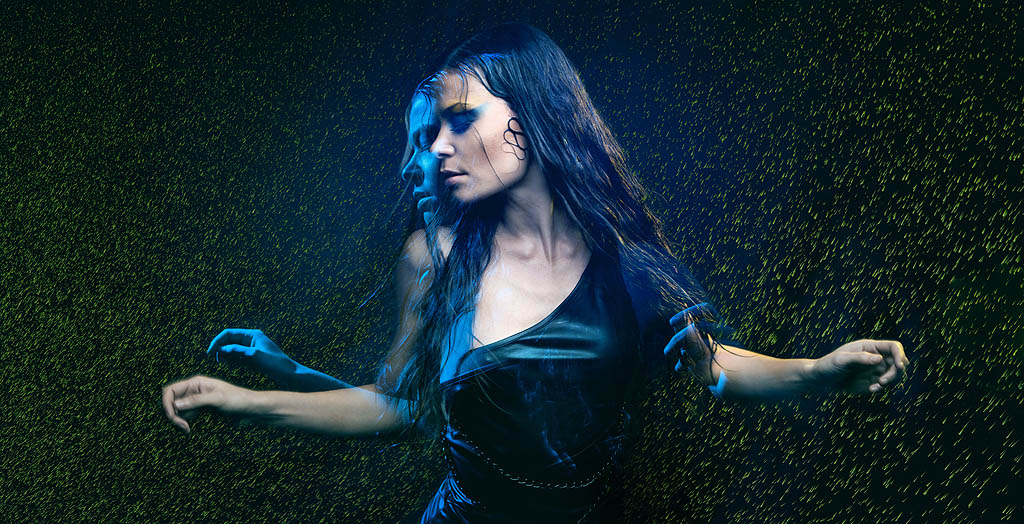 A me la sovrapposizione piace e pure parecchio. Quello che non mi convince è la "pioggia acida", che ci si aspetterebbe di vedere anche davanti ed addosso alla modella.