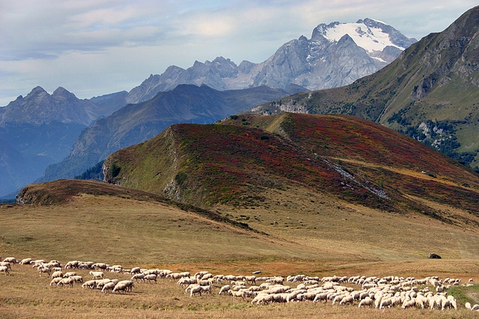 bello scatto! ottima la successione dei piani, ottimo il gregge in basso che da profondità e caratterizza lo scatto...bello quello ghiacciaio bianco che richiama i colori del greggie...