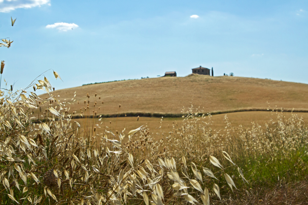 Punti di ripresa ne ho provati molti, poi ho scartato la maggior parte delle corrispondenti foto, per una ragione o per l'altra mi convincevano ancora meno. In questa inquadratura mi piaceva, e volevo mettere in risalto, l'avena selvatica secca del primo piano.