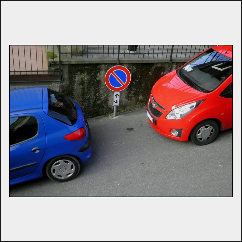 Più che il cartello in se stesso (che ripete un altro posto quattro o cinque metri più in alto) il motivo dello scatto è il colore delle auto che riprende quello del segnale di divieto.
