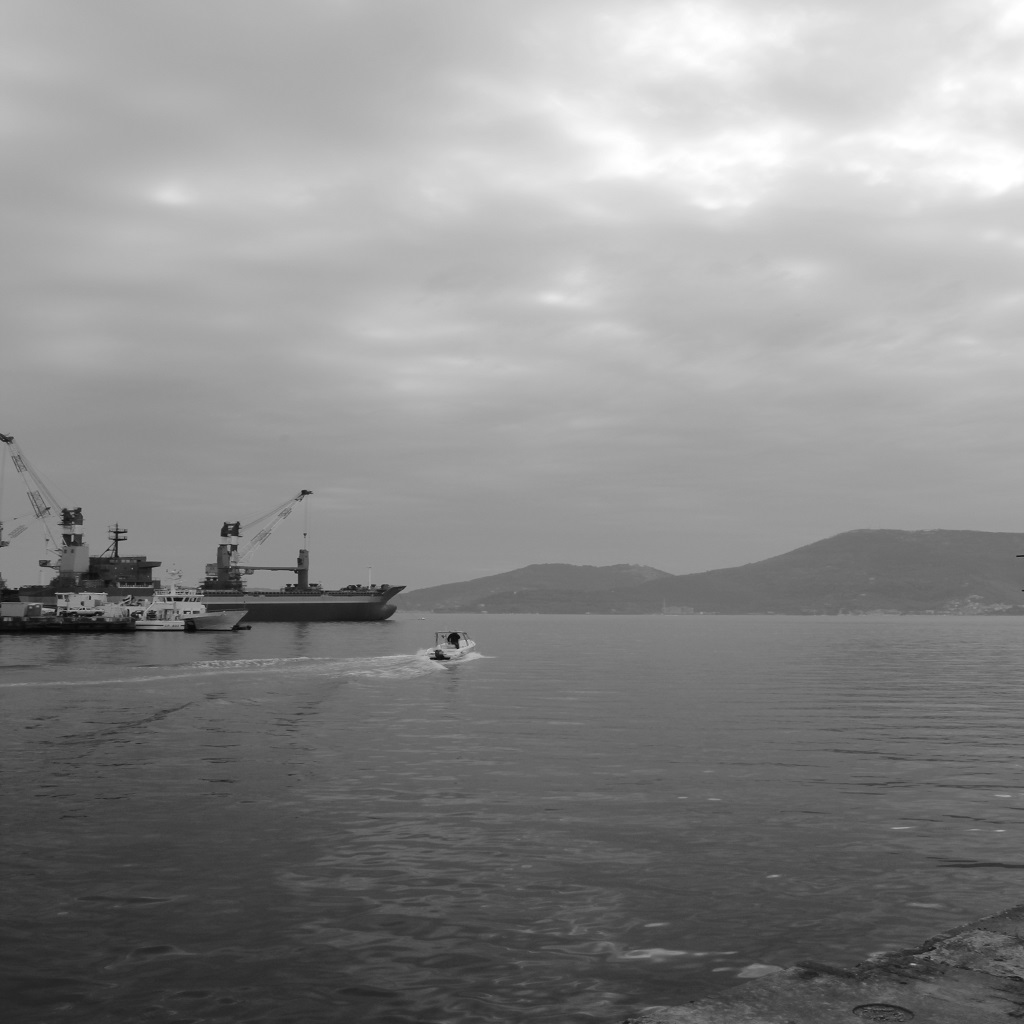 non avrei tagliato le gru sulla sinistra. Fra l'altro, sembra, che a destra avessi ancora margine per spostare l'inquadratura. Il molo in basso a sinistra IMHO non aggiunge nulla alla composizione e quindi lo avrei eliminato.