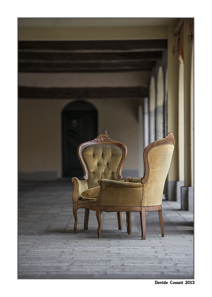Bell'equilibrio cromatico e compositivo per una scena con un forte potenziale di teatralità, che pare solo momentaneamente inanimata.