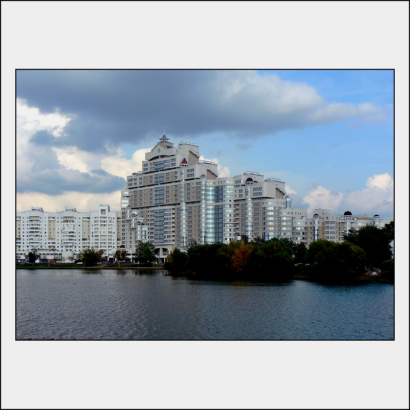 Anche questa fotografia intende documentare come cambia in fretta il panorama di Minsk: nuove costruzioni nascono in pochissimo tempo, anche se Minsk è considerata da molti La più brutta città del mondo trovo in queste una certa bellezza per il loro stile post-sovietico ...