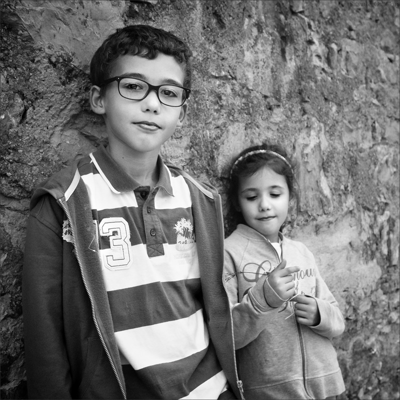 Caro Salvatore questa foto si avvale, oltre che di due splendidi soggetti, di una mirabile gestione della luce e di un BN a dir poco superlativo. La sorellina intenta col suo spago, ma consapevole di esserci pur lasciando la scena al fratello che irrompe con quel bellissimo sguardo in camera. Bellissima.