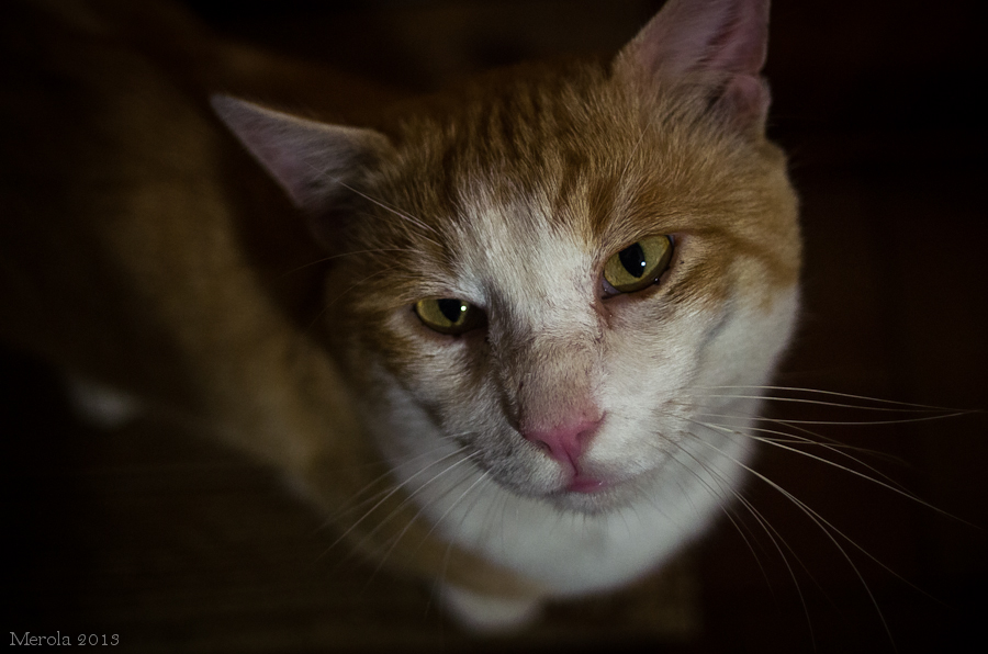 Un micio in penombra... a me più che incazzoso sembra che stia pensando: ma tu guarda questo, invece di farmi le coccole mi sta fotografando...
