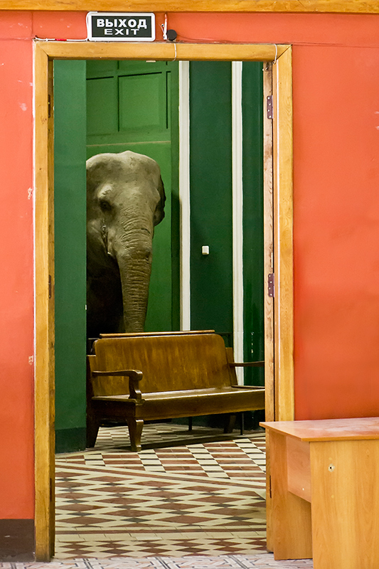 Per chi fosse interessato, l'elefante si trova nel museo zoologico di Mosca, all'inizio dell'esposizione.