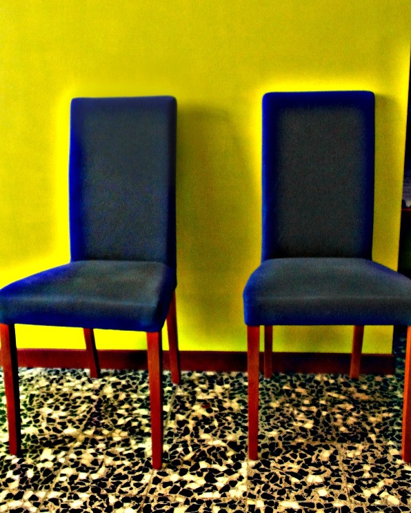 3)nonostante il titolo le sedie non sono parallele e lo si nota dall'allinemento diverso delle gambe delle sedie, a questo potevi ovviare spostandoti leggermente alla tua sx per scattare.
