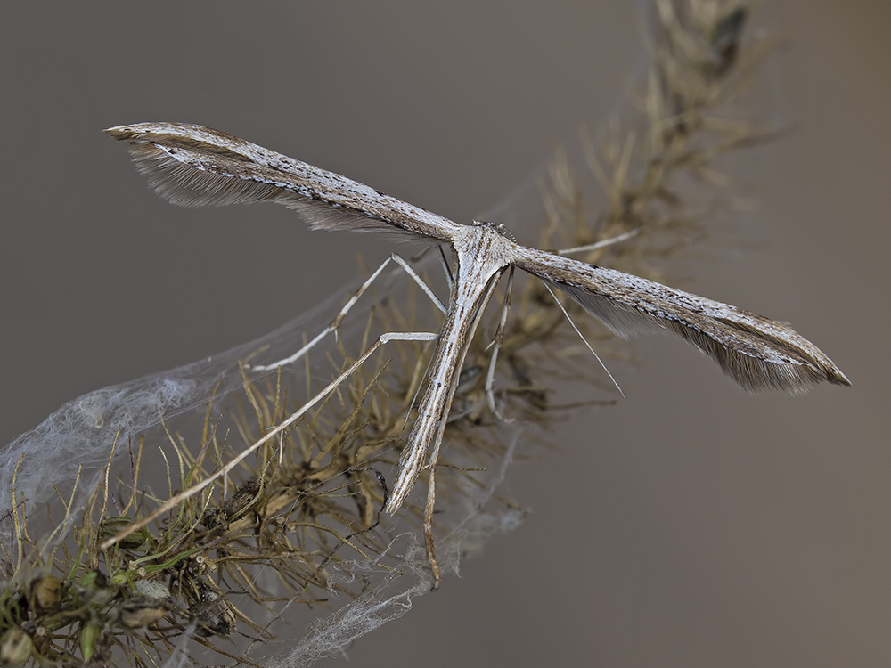 Ciao Piero, un tono su tono molto di stagione...mi piace la composizione...buono il dettaglio sul soggetto, sulla tinta unita dello sfondo si percepisce una leggera presenza di residuo recupero nitidezza post riduzione, leggera leggera che potrebbe essere eliminata con una riduzione del disturbo mirata solo ed esclusivamente sulla parte del suddetto sfondo...comunque...un bello Pteroforo...complimenti.