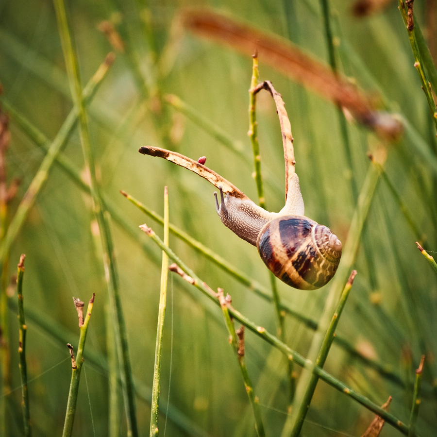 Una bella foto ambientata. Fai attenzione alla luce un po' alta sulla coda della lumaca.