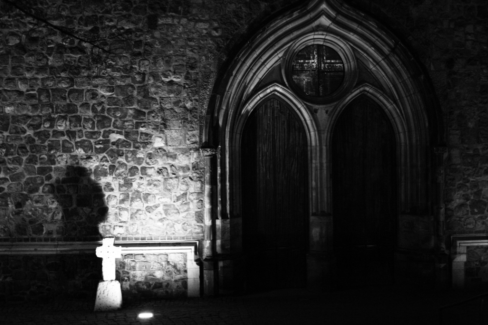 Dettaglio di una chiesetta nel centro di Berlino, durante la notte. L'atmosfera è molto da caccia ai vampiri!