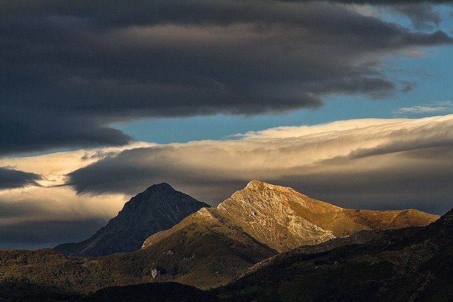 Hai colto una bella situazione di luce, interessante il contrasto fra il rilievo illuminato e quello, quasi gemello, in oscurità...per curiosità, hai usato un filtro per il rumore sul cielo?