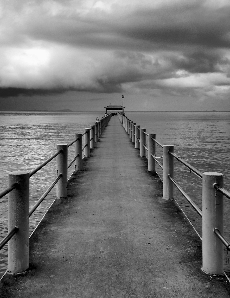 Dunque il cielo ho provato anche a toglierne ma alla fine è meglio così, ha una sua fisionomia molto armonica cosa che non capita spesso, sembra disegnato se ci fai caso. Disegnato al punto tale che il punto d'incontro, scusa il bisticcio, ha un riferimento doppio e cioè sia quello che hai acutamente osservato, sia la nuvola che dopo la curva va quasi a toccare il palo.
