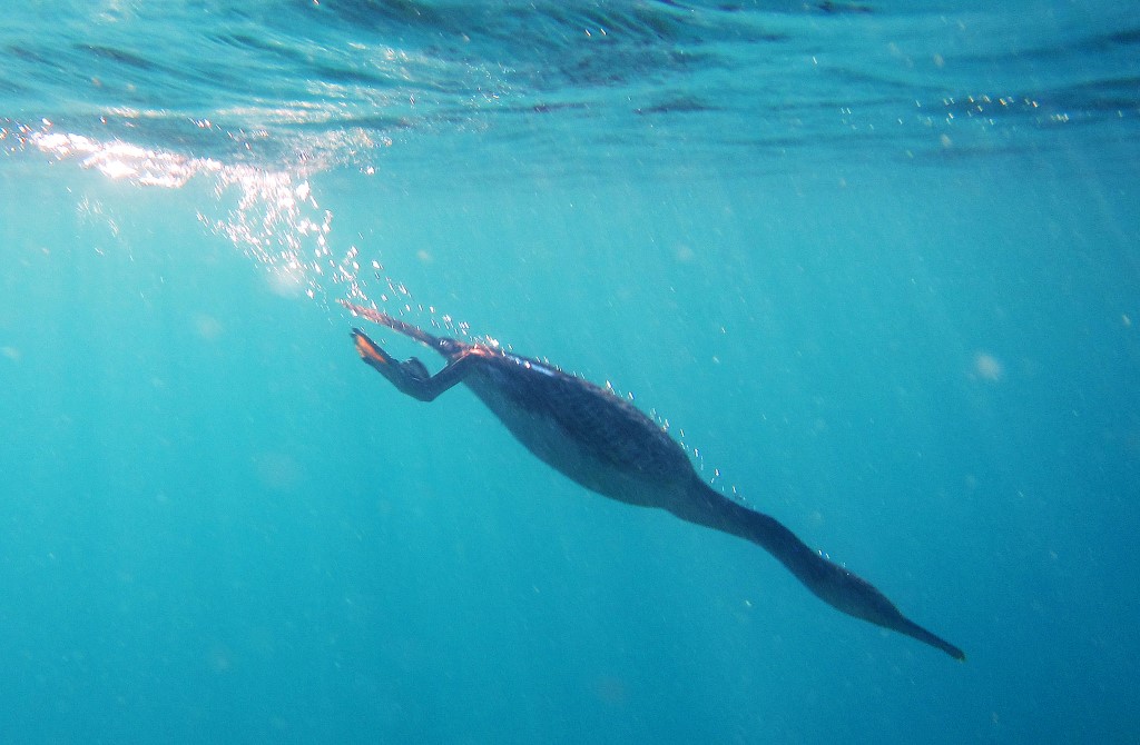 Bella la silhouette del cormorano(?) che s'immerge e molto bello il movimento della zampa palmata che rende bene la potenza della propulsione.