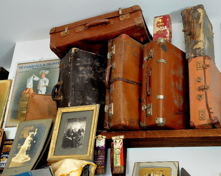 Capisco il fascino di quelle valige, come pure quanto possano evocare del passato di molti (e di rimando del presente di molti altri). La luce è pessima (ma ritengo che tu ci potessi fare poco), il taglio in basso è sbagliato (forse un po' più in alto, ché non si vedesse quella foto di gruppo mozzata in basso a destra), ed infine una cattiva lavorazione ha seghettato tutti i profili obliqui.