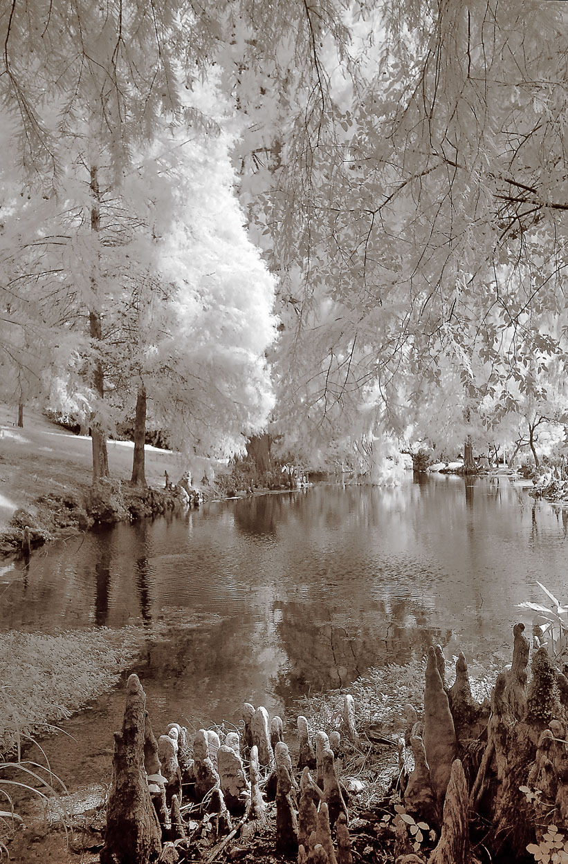 Un infrarosso che ci fa immergere in un mondo di favola, dai toni delicati . Molto piacevole anche la presenza ben leggibile del riflesso degli alberi nell'acqua increspata.