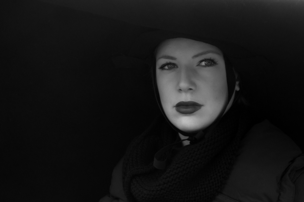Ciò che mi fa preferire questo a quello a color è il fatto che, non so se lo hai fatto a posta, ma questa immagine è perfetta come foto da pensare in bianco e nero dove volto (l'unica parte scoperta) e vestiti, ti hanno permesso di giocare con la luce in modo vincente.